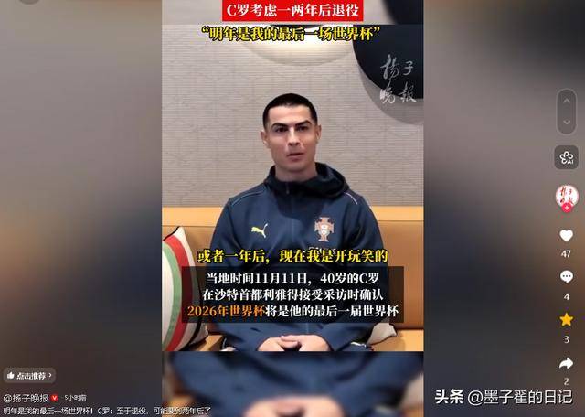 - 40岁C罗官宣最后一战2026世界杯谢幕