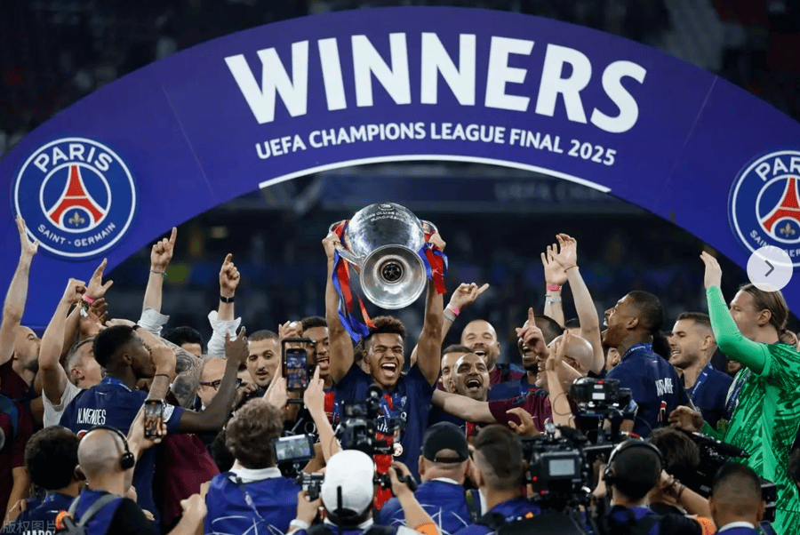 慕尼黑当地时间5月31日,2024至25赛季欧洲冠军联赛决赛在安联球场进行。法国巴黎圣日耳曼队以5比0战胜意大利国际米兰队,首次捧起“大耳朵杯”,标志着团队足球的胜利,球队前锋登贝莱成为金球奖和世界足球先生双料得主。