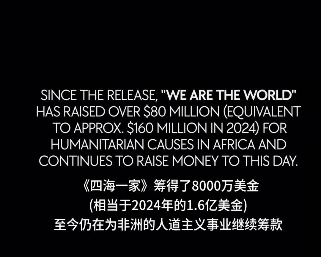 这张单曲最终销量突破2000万张,为非洲饥荒募集了超过8000万美元的善款。