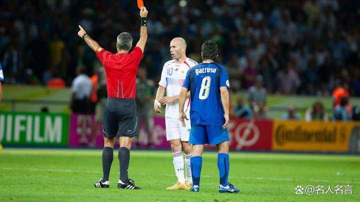 齐达内(Zinedine Zidane)的红牌是这场比赛最深刻的记忆点,当时主裁判是奥拉西奥·埃利松多(Horacio Elizondo),詹纳罗·加图索(Gennaro Gattuso)也在场上。